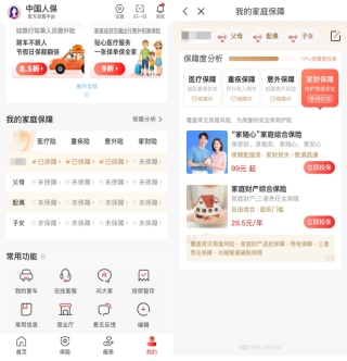 这类功能在家庭场景中颇具实用价值。例如30岁的王先生,事业稳定,他为自己、父母、配偶和子女都投保了一些保险,在过去,王先生需要定期记录自己的手工账本,每次还要登陆多家APP去查询保单,非常繁琐。最近他发现在中国人保APP中添加家人的信息后,这个APP会自动同步其名下的人保保单,无需额外寻找,就能掌握全家的保障状况。点击家庭成员对应的险种后,还能手动录入在其他保险公司的保险产品和对应的保额。在采访中,王先生表示在导入了家人的保障情况后,他发现他们在家在家庭财产上还存在一些保障缺口,于是在仔细了解APP推荐的产品后选择适合自己家庭的家财险,并完成了投保。