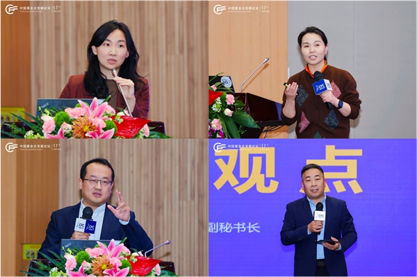 北京京益社会组织服务中心创始人黎颖露(左上);悦享新知创始人&CEO高瑞(右上);北京林业大学经济管理学院ESG研究中心主任、和众泽益主任王忠平(左下);南方周末研究院副秘书长孙孝文(右下)