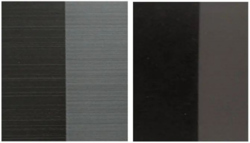 ▲普通喷墨网点(左)与混合网点(右)的光铜拉丝表现对比